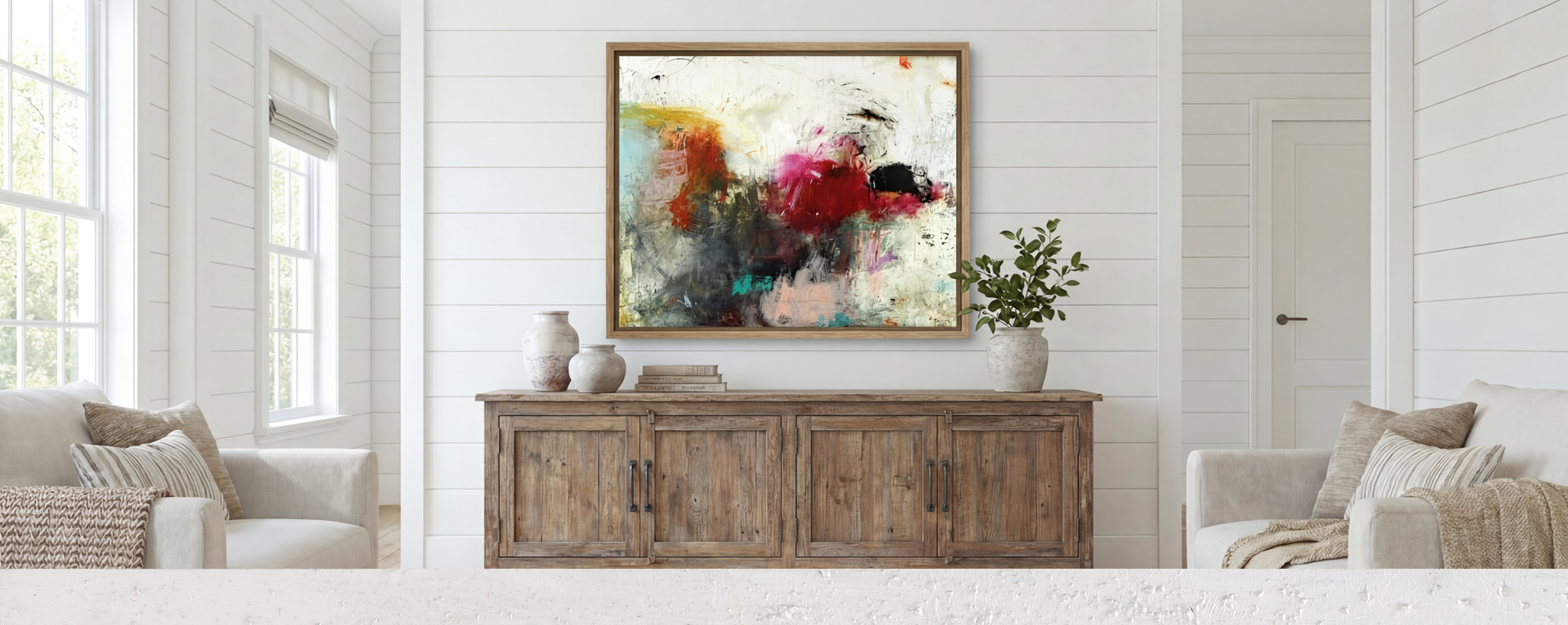 "Hi Shell, I received your painting today and words seem wholly incapable of expressing how INCREDIBLE it is. What I saw on my computer screen really moved me but those feelings pale in comparison to seeing the real painting. Wow -- I really am without words . . . I feel like I should send you a plane ticket so you can come see how perfect your painting is in the space we put it. You have some serious talent and I now understand with a whole new perspective why your paintings are so sought after. I have become a seeker myself and will be on the lookout for my next Raw Artist painting."